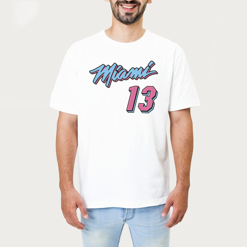 The Shirt features a vibrant “Miami 13” graphic inspired by the team’s iconic colors and branding. The design captures the energetic basketball culture of Miami while offering a clean and sporty look that stands out both at games and in everyday outfits.
