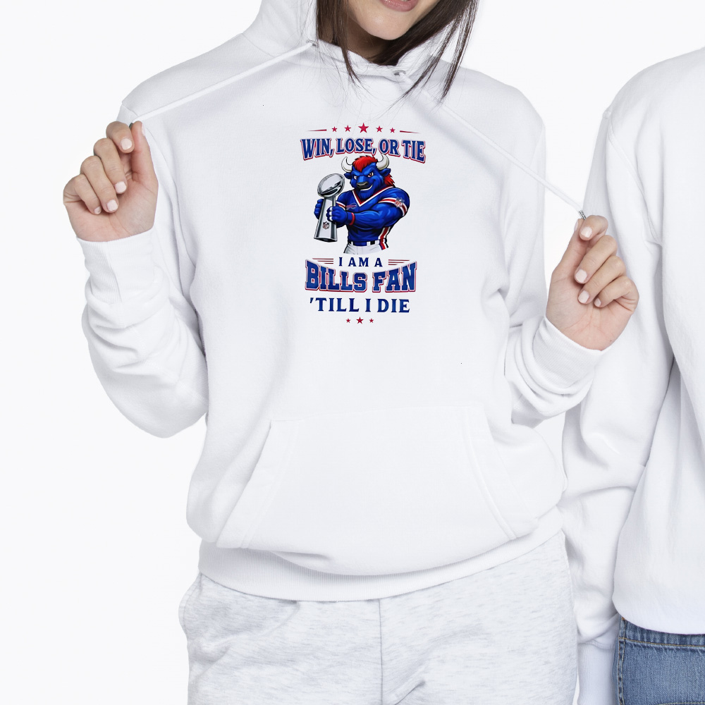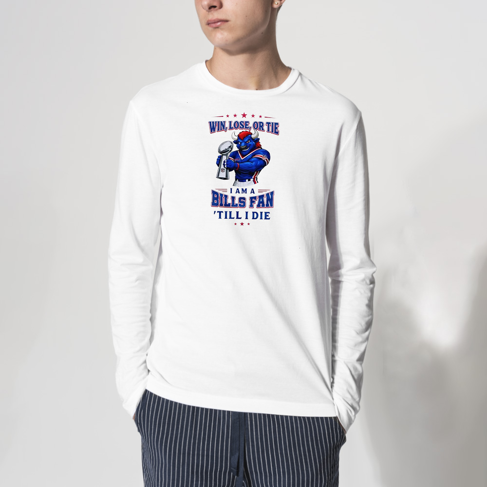 The statement “Win, Lose, or Tie – I Am a Bills Fan ’Till I Die” reflects true dedication and emotional connection to the team. It’s more than a slogan—it’s a mindset that resonates with lifelong supporters who stand by their team no matter the outcome.