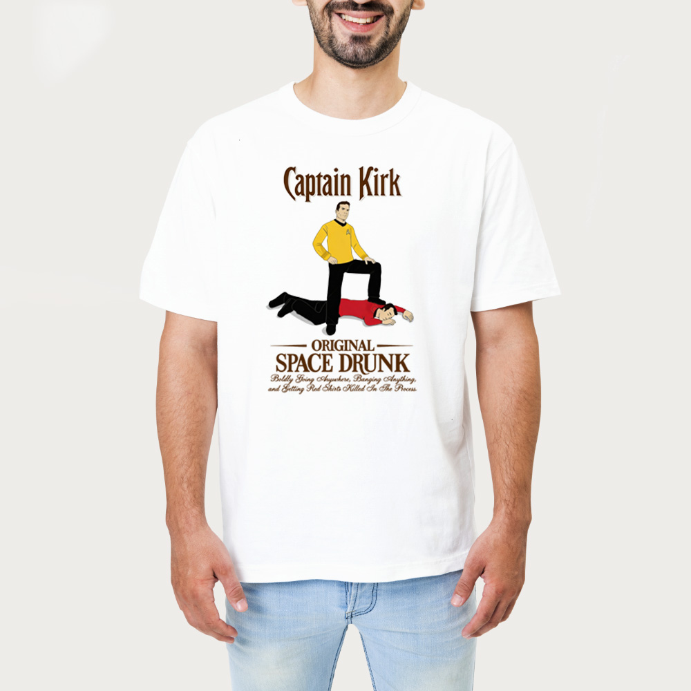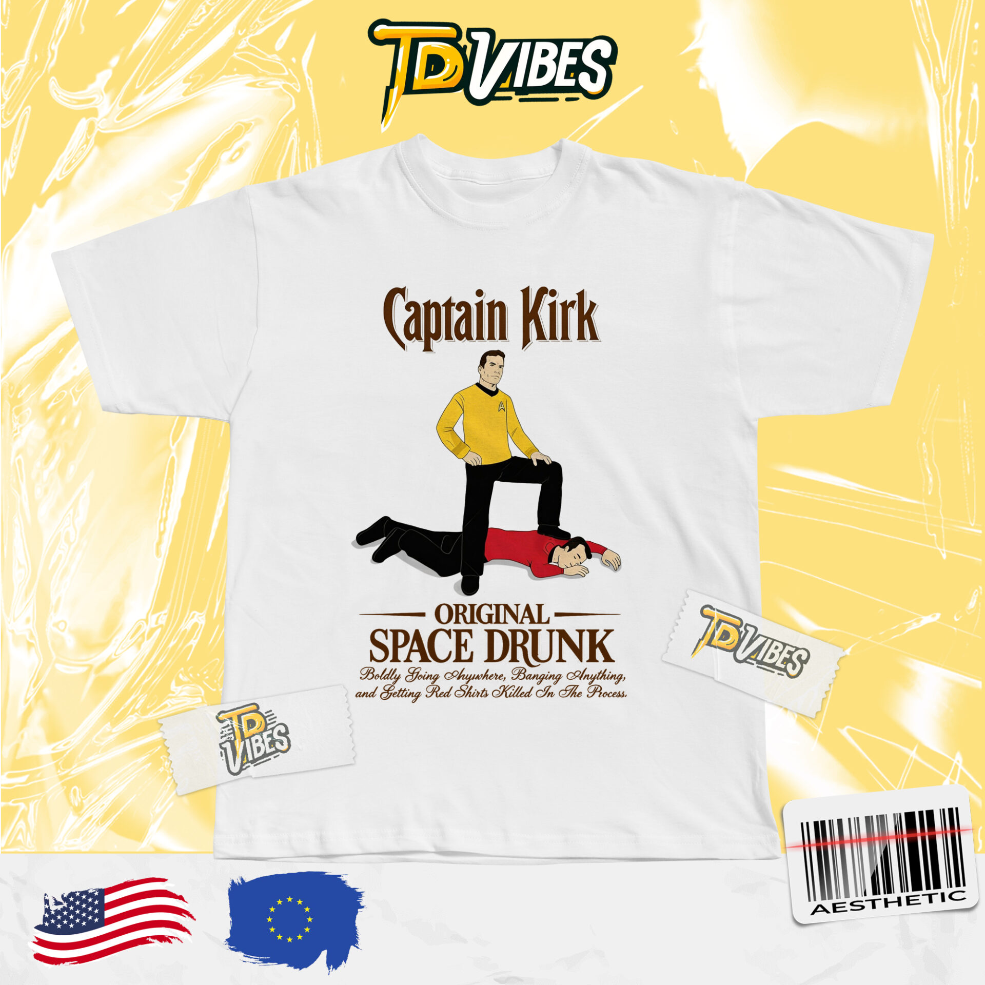 One of the standout features of the Celebrate Captain Kirk Birthday Star Trek Shirt is its playful illustration paired with the phrase “Original Space Drunk.” The design adds a humorous twist to the legendary captain’s bold personality, making it a fun and attention-grabbing graphic for fans of the franchise.
