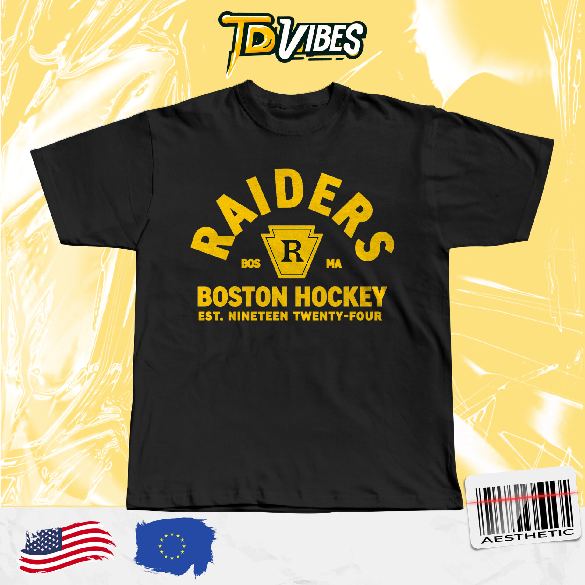 This shirt features bold “Raiders” lettering arched across the chest, combined with a classic emblem and “Boston Hockey” text. The layout, along with the “Est. Nineteen Twenty-Four” detail, gives it an authentic retro sports vibe that feels both nostalgic and stylish.