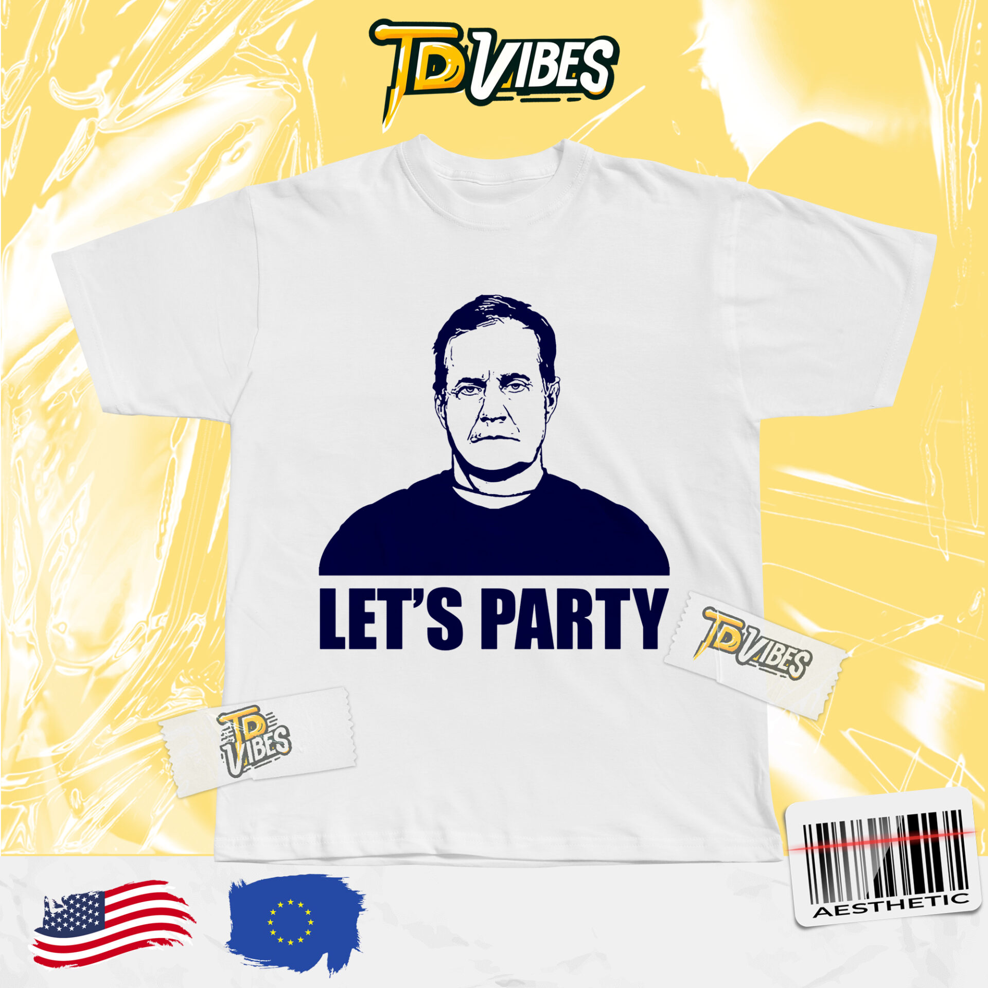 Add humor and personality to your wardrobe with the Lets Party Bill Belichick Tshirt, a graphic T-shirt that blends iconic style, comfort, and wit. Available now on TDVibes, it’s the perfect choice for fans who like their fashion confident, clever, and conversation-starting.