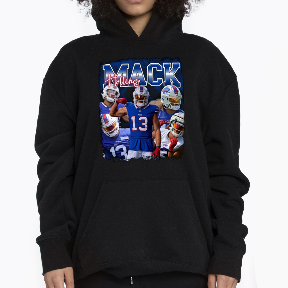 This shirt showcases multiple dynamic images of Mack Hollins in action, combining motion, energy, and team spirit into one compelling visual. It captures the intensity and athleticism that make him a player to watch on the biggest stage.