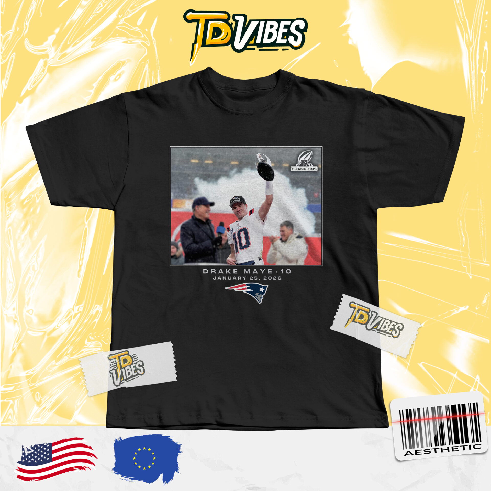 Designed for dedicated New England Patriots supporters, this shirt is ideal for game days, tailgates, sports bars, or as a collectible piece commemorating Drake Maye’s MVP season and Super Bowl victory.