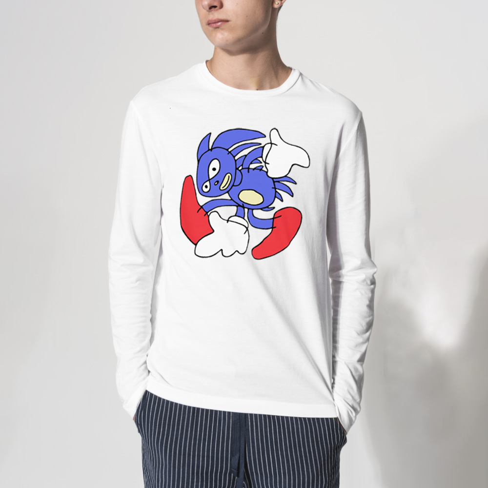 This shirt features the famous “Sanic” version of Sonic the Hedgehog, known for its intentionally funny, hand-drawn style that has become a classic internet meme.