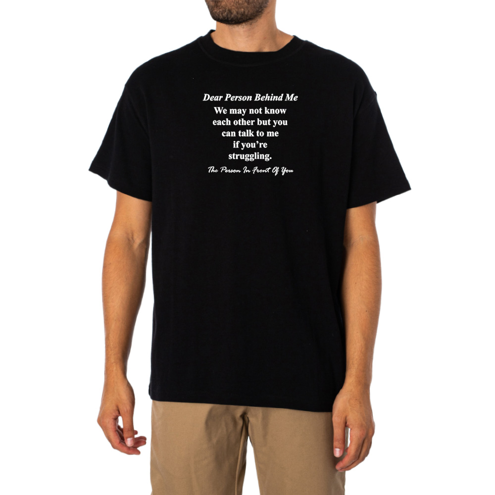 The Suicide Prevention Awareness Dear Person Behind Me Support T-Shirt by TDVibes is more than just apparel—it’s a statement of care, empathy, and solidarity. Ideal for those who believe in spreading kindness and awareness through simple, meaningful actions.