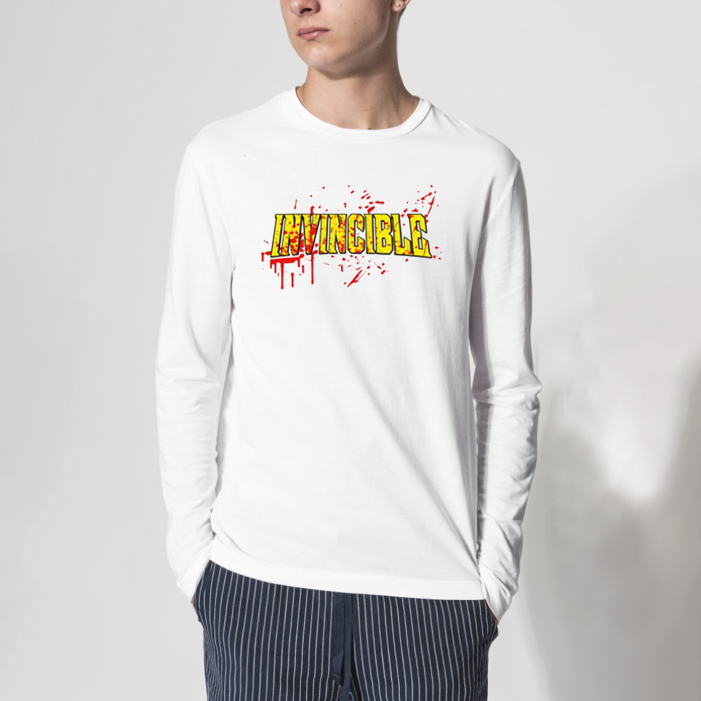 The shirt features striking lettering and dramatic accents inspired directly by the Invincible series. Its vibrant colors and graphic details make it stand out, allowing fans to showcase their love for the franchise in a stylish and eye-catching way.